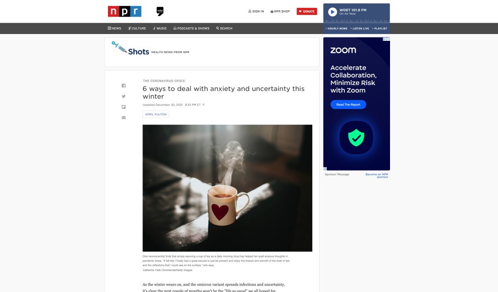 Mock Project for “6 Tips To Cope With COVID-Related Anxiety This Fall And Winter” from NPR