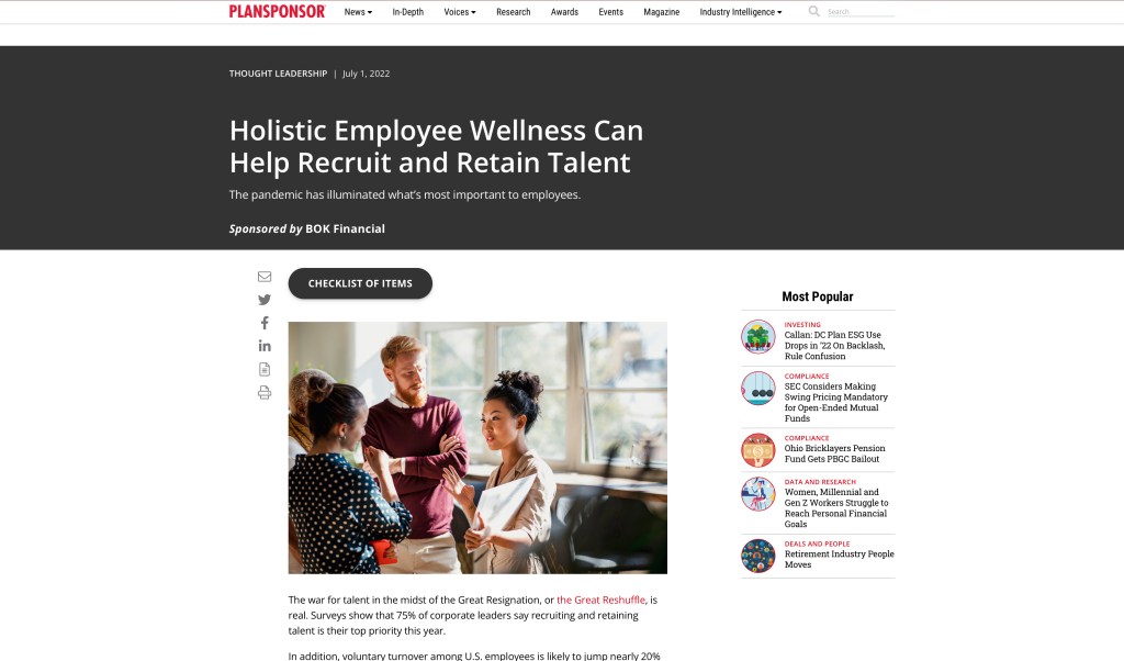Mock Project for “Holistic Employee Wellness Can Help Recruit and Retain Talent” from Plansponsor