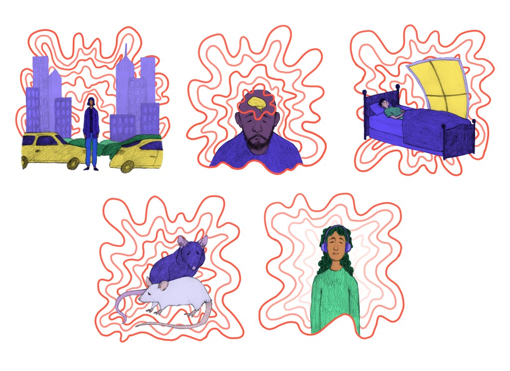 Everyday Noises Article Original Version Mockup Spot Illustrations for “Everyday Noises Are Making Our Brains Noisier” from Nautilus